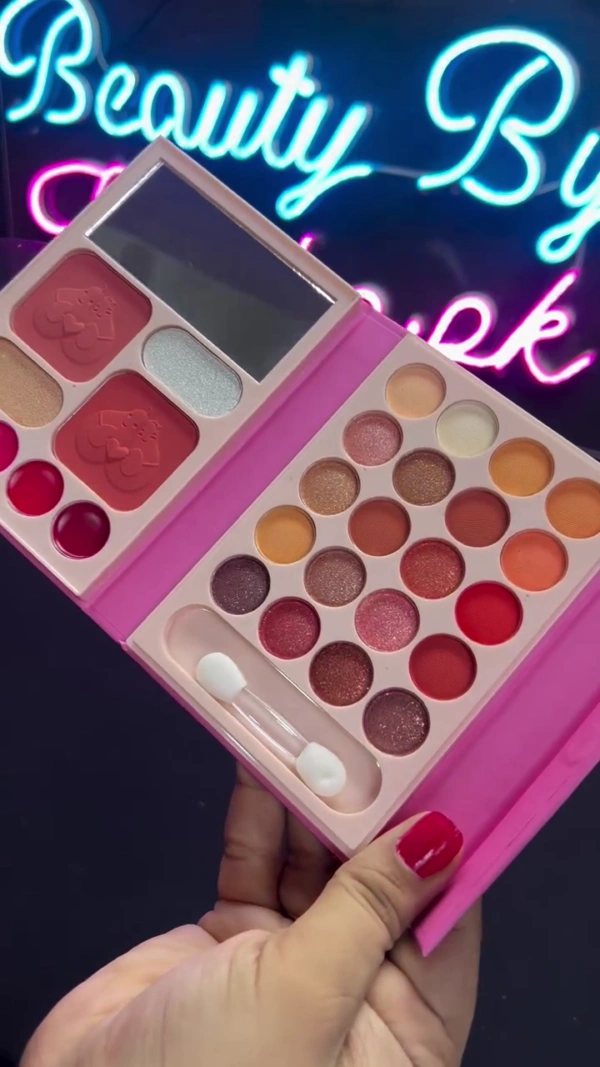 Multi-Use Palette – Covers eye, lip, and face makeup in one compact kit.