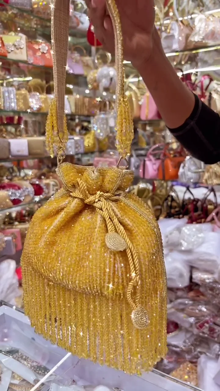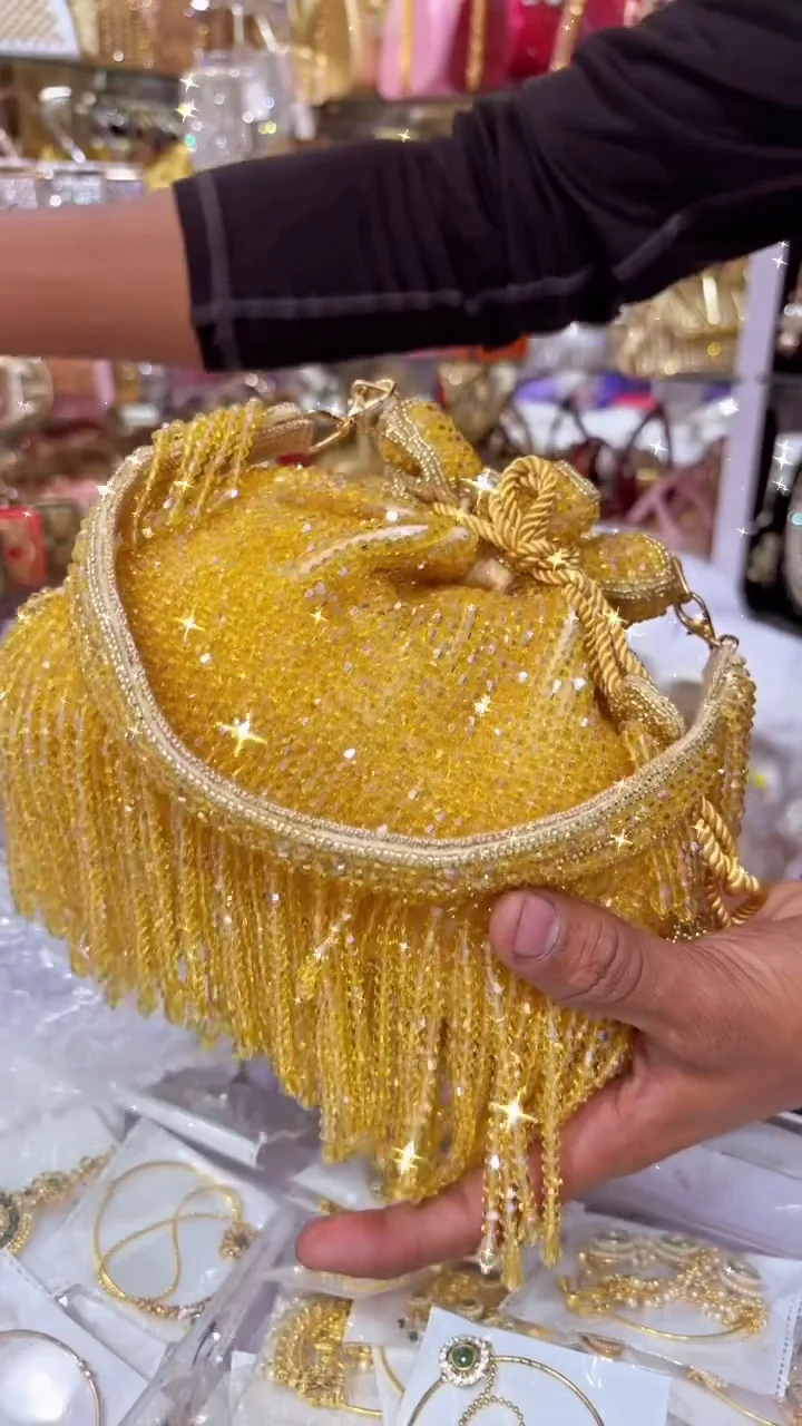 Elegant Yellow Pearl Hand Purse for Women | Stylish Party & Festive Clutch Bag | Trendy Fashion Accessory