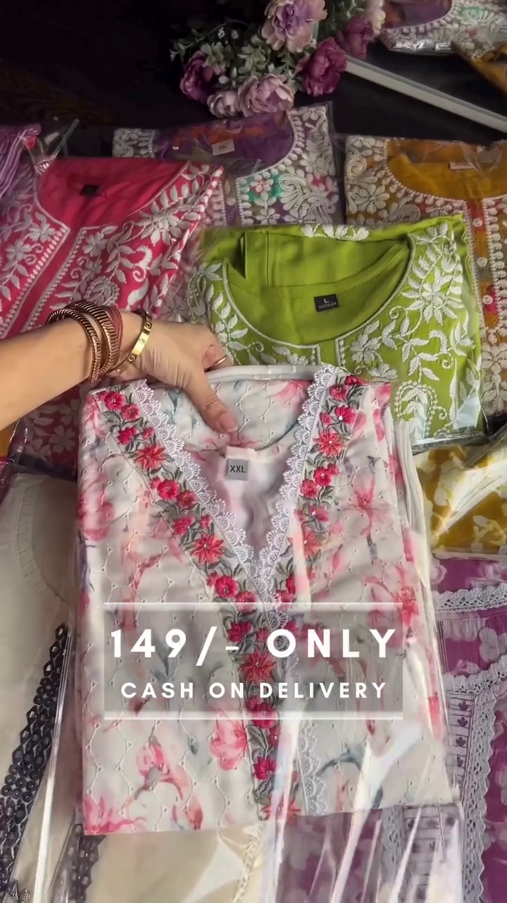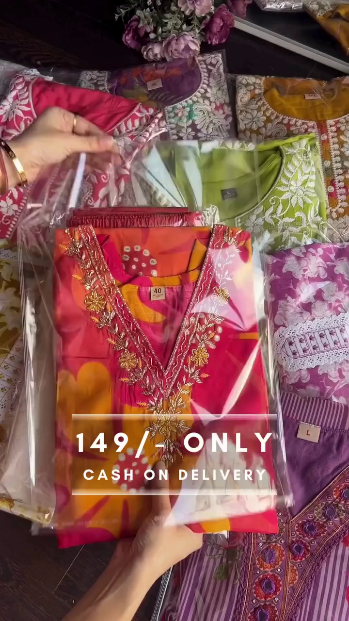 • Embroidered Neckline: Elegant detailing that enhances the simple prints with sophistication.