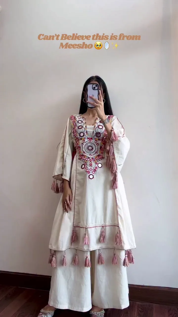 Intricate Mirror Work: Decorated with delicate mirror embellishments, adding sparkle and a festive touch to your outfit.