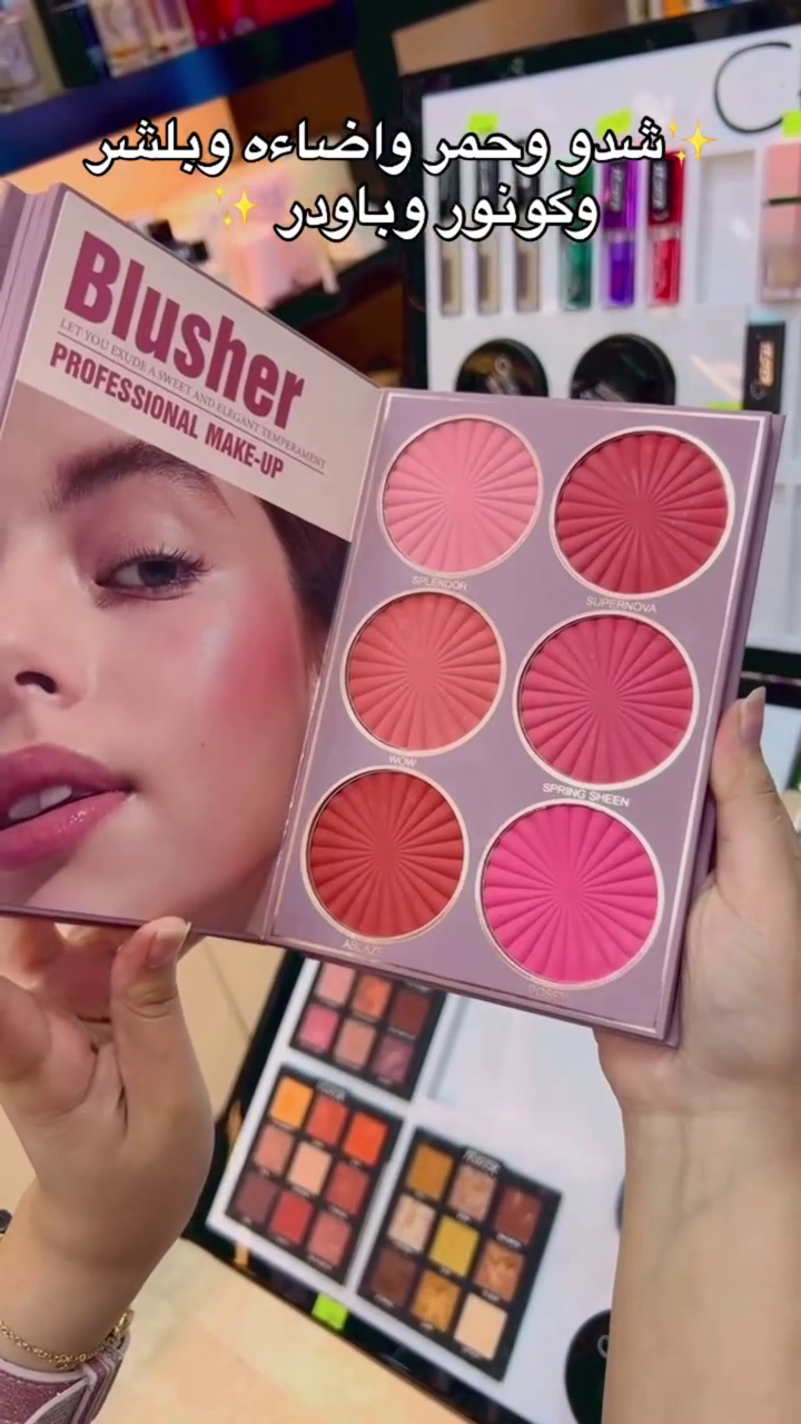 Includes soft and pigmented blush shades in peach, rose, and coral tones.