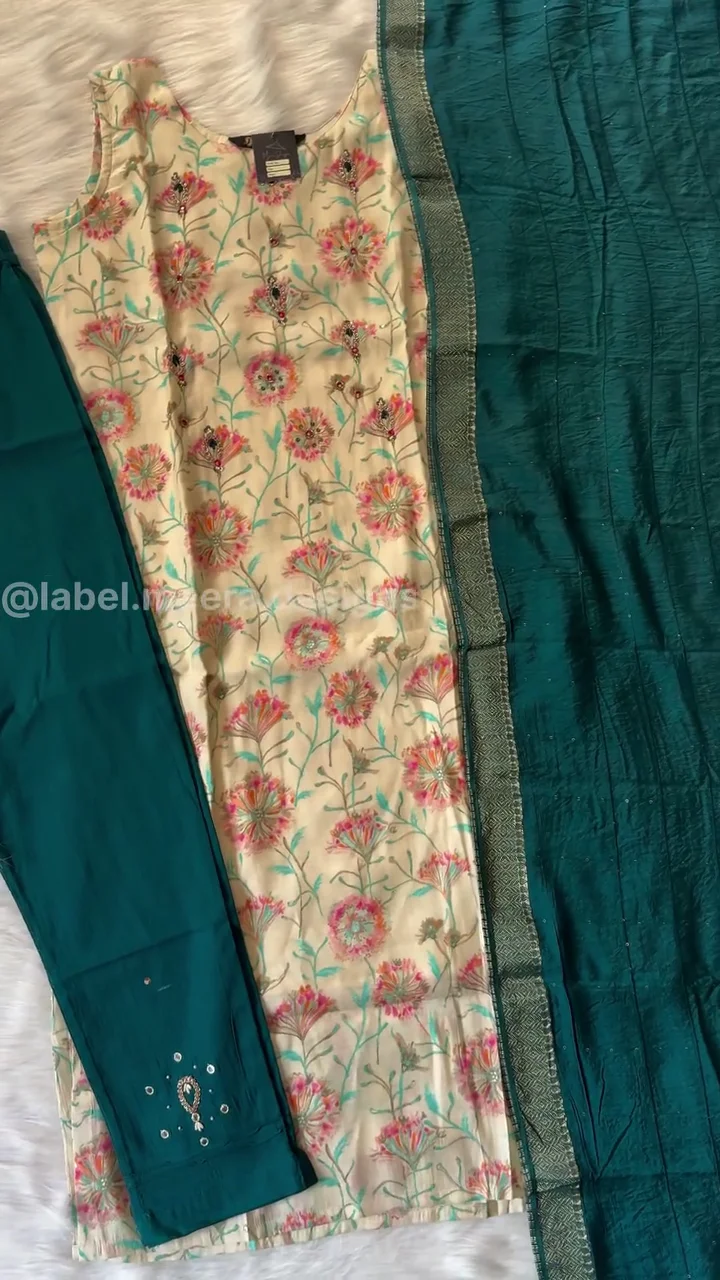 + Free ShippingStep into timeless elegance with this meticulously crafted 3-piece ethnic ensemble. Featuring a harmonious blend of soft cream and deep teal, this set is designed for the modern woman who appreciates traditional artistry with a contemporary edge. The delicate hand-embroidery and premium silk-finish fabrics make it an ideal choice for semi-formal gatherings, festive events, or evening soirées.