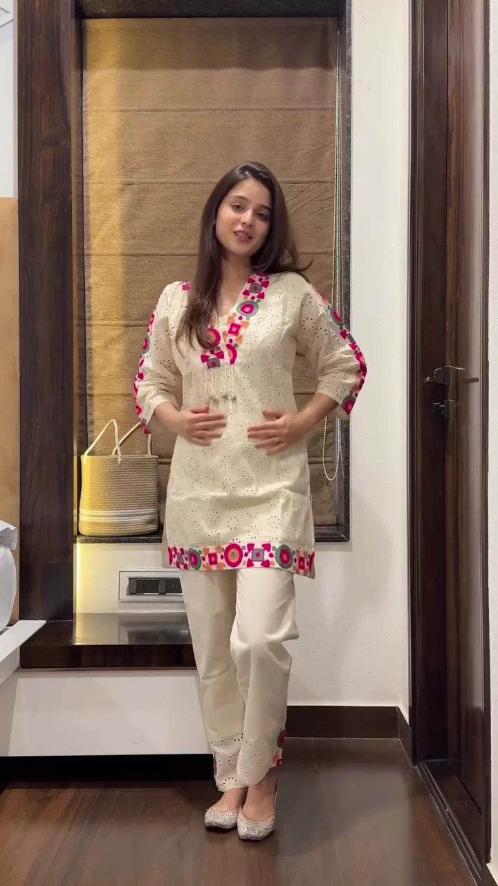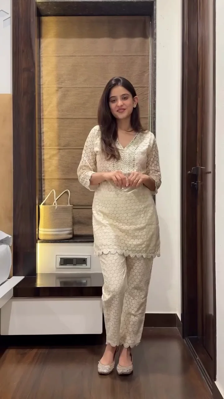 • Includes a beautifully designed white kurta with matching corded bottom for a complete outfit.
